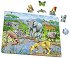 - върху цялата картонена подложка са направени очертанията на всички пъзел части, така че децата получават подсказки и подреждането става по-лесно - чрез търсене на сходства и налагане на елементи върху очертанията мъничетата започват да различават формите, да търсят и намират съвпадения;