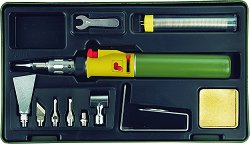 Един инструмент за 6 различни приложения: запояване, размекване, горещо рязане, заваряване, обработване на термосвиваем шлаух и пирографиране (пирография). Приложим на всяко място и по всяко време. "Microflam MGS" работи с течен газ бутан. Уверете се, че газа, който използвате е рафиниран газ бутан, който може да се използва и за запалки. Най-често приложение: Накрайник за запояване: обичайни работи по запояване, с калаен припой Нож за горещо рязане: рязане на найлонови въжета за предотвратяване на "разнищване" Профилен нож: рязане по размер на листов материал от пластмаса и други ... |