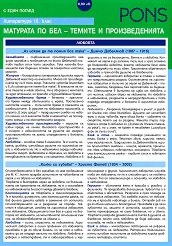 Матурата по Български език и литература - темите и произведенията. Помагалото е предназначено за ученици от 12. клас и е под формата на дипляна във формат A4, което улеснява и ускорява проверката на наученото. Ламинираното покритие го прави удобно, здраво и годно за дълготрайна употреба. В изданието присъстват темите: Любовта Аз искам да те помня все така - Димчо Дебелянов (1887 - 1916) Колко си хубава! - Христо Фотев (1934 - 2002) Посвещение - Петя Дубарова (1962 - 1979) Вярата и надеждата Спасова могила - Елин Пелин (1877 - 1949) Молитва - Атанас Далчев (1904 - 1978) Вяра - Никола Вапцаров ( ... |