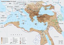 Характеристики: географска мрежа; държави; османски завоевания и османски васални територии от XIV до XVII век; държавни граници към края на XVII век; граница на Османската империя след договора от 1699 г.; граници на владения на Хабсбургите преди мирния договор, важни битки, обсади, превземания на селища, договори; столици и градове; хидрография; надписи на хидрография, държави, историко-географски области и други; легенда. Картата е двустранно ламинирана. Изработена е от винил с пластмасови лайсни в долния и горния край и шнур на горната лайсна за окачване на картата. Размерите на стенната карта са 140 x ... |