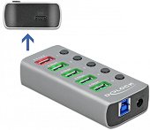 USB хъбът от DeLock е с метален корпус и може да бъде свързан към компютър чрез USB-A интерфейс. Той разширява портовете на компютъра с 4 USB-A порта. Свързаните устройства могат да се зареждат или да прехвърлят данни със скорост до 5 Gbps. Всеки порт може да се включва или изключва индивидуално с помощта на превключвателите. USB-A портовете имат рамка, която светва веднага щом портът бъде активиран. Предвиден е и допълнителен USB-A порт за бързо зареждане, който предлага възможност за зареждане на устройства с до 2.4 A. Характеристики: конектори: 1 x SuperSpeed USB-B (USB 3.2 Gen 1) female 4 x SuperSpeed USB-A ... |