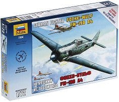 Умален модел на изтребител "Focke Wulf FW 190 А-4" от производителя "Zvezda". Дължината на модела е 13.8 cm. Мащаб на модела: 1:72. За този модел не ви е необходимо лепило, за да го сглобите. Елементите на модела са направени от едноцветна пластмаса. Моделът може да се оцвети с боички. За Focke Wulf Fw 190 А-4 "FW 190 A-4" е германски едномоторен, едноместен изтребител с монококова конструкция и двигател с въздушно охлаждане "BMW801". Изтребителят се появява като поддържаща роля на основния "Me-109". Много скоро става ясно, че творението на инженер Курт Танк надминава & ... |