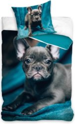 С детския спален комплект French Bulldog на Sonne без усилие ще превърнете леглото на вашето дете в комфортно и уютно място за сън и почивка. Комплектът се състои от калъфка за възглавница и двулицев плик за олекотена завивка, който е снабден с цип. Той е изработен от мека материя със състав 100% памук, който е нежен на допир до деликатната детска кожа. Спалният комплект е подходящ за легла с размери на матрака 120 x 190 или 120 x 200 cm. Препоръка за пране: Може да се пере в перална машина обърнат наопаки при 40°C. Как да изберете правилния размер спален комплект: Когато избирате спално бельо за вашите ... |