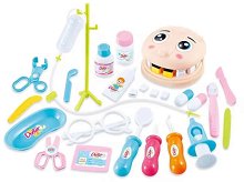 С комплекта от Sonne вашето дете ще се превърне в истински зъболекар. Той съдържа всичко необходимо. Детето ще открие очила, спринцовка, лъжица, ножица, система, медицински клещи, хапчета, четка за зъби, паста за зъби, купичка, пинцети, бадж, зъболекарско огледало и други. Освен това към комплекта е включен и стойка във формата на глава с уста, където детето ще може да поставя зъби и да ги лекува. ... |