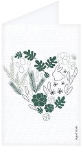 Зарадвайте любим за вас човек с картичка от August Studio. Тя е изработена от плътен бял картон и е декорирана с изображение на клончета ела, шишарки и листа на дъб във формата на сърце. От вътрешната страна има място за лично послание. Картичката е с размери 10 x 15 cm. Към нея има пощенски плик с размери 11.5 x 16.2 cm. ...