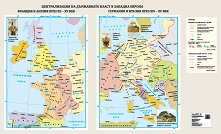 Учебна историческа карта, разделена на две части. Първата разглежда "Франция и Англия през XII - XV век.", а втората "Германия и Италия през XIV - XV век". Характеристики на картата: ламинирана с лайсни; размери: 175 x 107 cm. ... |