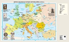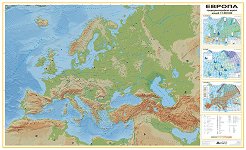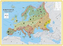 Политическа карта на Европа e стенна географска карта с размери 175 x 107 cm. Изработена e от винил и е с пластмасови лайсни в долния и горния си край. В съдържанието на картата са включени: географски обекти; държавни граници столици; градове; центрове на автономни територии. Във врезка е показана карта на Европейски съюз, допълнителни данни за органите на управление в ЕС и знамена на държавите, основателки на ЕОВС и членки на ЕС. ... |