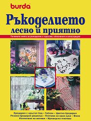 Голяма книга за ръкоделието с курсове, обяснения и илюстрации. ... В тази книга ще намерите: Най-предпочитаните техники от света на ръкоделието: Бродерия с кръстат бод, гоблен, пти-поан, цветна бродерия, рязана бродерия, ришельо, филе, мотиви на една кука и ирландско плетиво. Курсове с обяснения и снимки: За справка на опитните и обучение на начинаещите. Прегледност: Всяка глава започва с малки, лесни модели и достига до най-взискателните произведения. Практичност: Упътването и илюстрациите са на една страница, както и по-малките схеми, детайли и скици. По-големите лесно ще намерите в приложенията. Допълнителна ...
