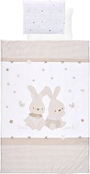 Спалният комплект е част от серията Honey Bunny, в която ще откриете още бебешки и детски продукти по темата. ... Спалният комплект с 2 лица от Lorelli е изработен от 100% памучен ранфорс, който е нежен на допир до чувствителната бебешка кожа, а пълнежът му е от 100% полиестерна вата. Той се отличава със стилно съчетани цветове и ефектно декориран десен, благодарение на които без усилие ще превърнете креватчето на вашето бебе в уютно и красиво място за сън и игри. Комплектът се състои от възглавница, калъфка за възглавница, долен чаршаф и олекотена завивка с топлинна устойчивост 2.9 tog*. Долният чаршаф е с универсални ... |