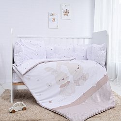Спалният комплект е част от серията Honey Bunny, в която ще откриете още бебешки и детски продукти по темата. ... С двулицевия спален комплект на Lorelli без усилия ще превърнете креватчето на вашето бебе в красиво и уютно място за сън и забавни игри. Той се състои от възглавница, калъфка за възглавница, долен чаршаф, обиколник и олекотена завивка. Изработен е от 100% висококачествен памучен ранфорс с пълнеж от 100% мек полиестер. Отделните части на обиколника са снабдени с удобни връзки, чрез които лесно можете да ги закрепите за предпазните решетки на бебешкото креватче, като по този начин той обгръща част от ... |