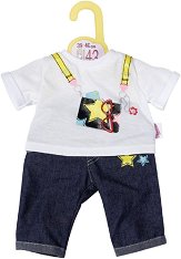 Костюмът е част от серията Dolly Moda, където ще намерите още интересни комплекти. ... Вашето дете ще се погрижи за куклите си с костюма от Zapf Creation. Комплектът включва панталони и тениска с илюстрации на звезди. Подходящ е за кукли с размер от 39 до 46 cm от сериите Baby Annabell и Baby Born, които може да закупите отделно. Дайте шанс на малчугана да развие своето въображение и социално-емоционални умения, докато се забавлява. Важно: Куклата, показана на допълнителните снимки, може да закупите отделно. ... |