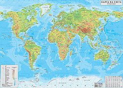 Картата съдържа информация за: Географска мрежа Държави, представени чрез фоново оцветяване и държавни граници Знамена на държавите Столици Основни градове Хидрография Легенда Стенната карта е изработена от винил и е с пластмасови лайсни в долния и горния си край. Размера на разпъната карта е 100 x 141 cm. ... |