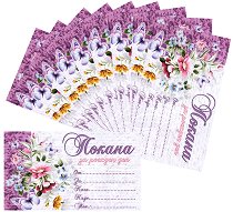 Комплектът се състои от 10 покани подходящи за рожден ден на момиче. На тях могат да се изпишат името на рожденика, за кого е поканата, датата, часът и мястото на събитието, както и телефонен номер за връзка. Всяка от поканите е с размери 11.5 x 7.5 cm. ... |