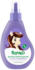 Спрей балсамът на Бочко улеснява разресването на детската коса. Прави я мека и гладка, предотвратява заплитането и наелектризирането. С него с лекота ще правите различни прически на малката си принцеса. Формулата му е обогатена с пантенол, който подхранва и овлажнява нежната детска коса. Балсамът е подходящ за използване както върху влажна, така и върху суха коса, без изплакване. Спрей балсамът е дерматологично тестван и не съдържа парабени. ... |