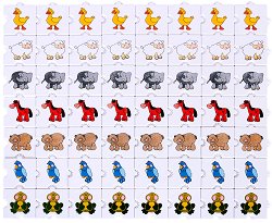 Игра на домино, в която децата могат "да съставят" сами отделните плочици и дори да ги редят така, все едно строят "кули" във въздуха - невероятно, но с "Morphun" наистина може да се получи. Вдъхновена от традиционното домино, детската игра "Домино с животни" позволява на малките участници да играят играта както в класическия ѝ двуизмерен вариант, така и във вълнуваща 3D версия. В комплекта са включени 56 квадратни елемента с картинки на животни (по 8 плочки с един вид животинчета). Помогнете на децата да съединят блокчетата по двойки и така ще сглобите плочките за домино ... |
