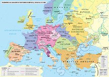 Характеристики: географска мрежа; държави, представени чрез държавни граници и фоново оцветяване; васални земи на Османската империя, представени чрез щриховка; граници на големи самостоятелни владения; граница на Свещената римска империя; хидрография; важни морски търговски пътища; столици и градове; важни търговско-занаятчийски центрове; големи панаири или пазари; центрове на корабостроене; надписи на хидрография, държави и други; легенда. Картата е двустранно ламинирана. Изработена е от винил с пластмасови лайсни в долния и горния край и шнур на горната лайсна за окачване на картата. Размерите на ...