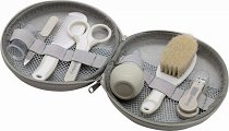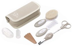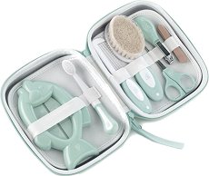 Комплектът от Nuvita съдържа всички важни тоалетни принадлежности необходими за вашето бебе, още от самото му раждане. Той се състои от четка за коса с естествен косъм, много нежна към първата бебешка коса, гребен със заоблени връхчета и ергономична форма, ножица със заоблен връх, нокторезачка с ергономична дръжка, назален аспиратор за почистване на ноздрите, 5 картонени пили за заглаждане на бебешките нокти и дигитален термометър с мек връх. Всичко това се съхранява в практичен несесер с цип, който е идеален за пренасяне по време на пътуване. Несесерът е поставен в кутия, която го прави идеален за подарък. ... |