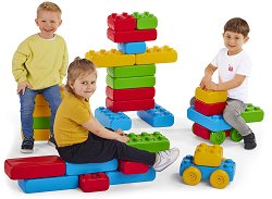 Конструкторът Maxi от Mario Inex се състои от 30 големи части, с които могат да се сглобят две колички, висока кула, голяма стена, а защо не и къща, в която децата да могат да влязат. Комплектът е подходящ за деца над 3 години. Изработен е от пластмаса и е оцветен в ярки цветове, които ще привлекат детското внимание. Блокчетата са изключително здрави и децата ще могат да ходят по тях, да ги яздят или да бутат с крачета сглобените колички. Подходящи са за игра както у дома, така и в детска градина, или център. ... |