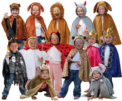 Костюмите от Betzold са подходящи за разиграване на ролеви игри, театрални постановки и пиеси. Те разполагат с качулки и имат велкро лента за закопчаване отпред. Изработени са от полиестер. Децата могат да влязат в ролите на слон, лъв, тигър, леопард, куче, таралеж, крал, калинка, кралица, фея, вълк, заек и магьосник. С тях могат да се разиграват сцени от приказките или от учебния материал по литература. Може да добавите към костюмите сценичен грим с помощта на специалните бои за лице и тяло, които може да закупите отделно. Децата ще проявят своята креативност, въображение и артистични умения, докато се забавляват. ...
