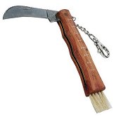 Нож за гъби с дървена дръжка с линия и частично серетирано стоманено острие. В долната част на дръжката е вградена четка. Ножът разполага с кука с автоматично затваряне за закачане на колан или раница. ...