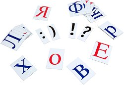 Образователният комплект от магнитни български букви и препинателни знаци е създаден специално за децата в предучилищна група и 1. клас. Той ще помогне на малчуганите да научат лесно българската азбука и с него ще могат да съставят думи, фрази и кратки изречения, като ги подреждат на магнитна дъска или на повърхността на хладилник. Буквите в комплекта са оцветени с различни цветове спрямо звуковете, на които се разделят - гласните са оцветени в червено, сонорните съгласни са оцветени в синьо. Комплектът се състои от общо 296 отделни цветни елемента. От тях малките букви са 185 на брой, като буквите - б, в, г, д, ж, з, ... |
