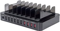 Станцията за зареждане от Manhattan разполага с 10 порта за USB зарядни за таблети, мобилни телефони и други преносими устройства. Тя предоставя бързо зареждане чрез QC 2.0 на първия порт, 1 усилвател на следващите пет порта и 2.4 A на последните четири порта. QC 2.0 позволява адаптивно зареждане и автоматично настройва изходните мощности между 2.4 A, 2A или 1.5 A, за бързо зареждане на устройството. От 2-ри до 6-ти порт се зареждат пет смартфона едновременно с мощност 1 A. За зареждане на Android е най-добре да се ползват портове - 2, 3 и 4, а за iPhone - 5 и 6 порт. 7, 8, 9 и 10-ти порт зареждат на 12 W чрез ... |