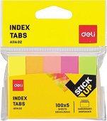Самозалепващите индекси от "Deli" намират приложение във всеки офис, училище или дом. Подходящи са за писане на бележки, отбелязване на страници в книги, тефтери и учебници, организиране на работен процес и приоритизиране на задачи. Цветните индекси могат да се използват многократно без да оставят следи по повърхността след премахване. Опаковката съдържа по 100 броя в жълт, оранжев, розов, цикламен и зелен неонов цвят. Цветните индекси са с размери 5 x 1.5 cm. ... |