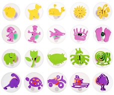 Използвайте печатите с разнообразни картинки, за да създадете завършващ акцент във вашите уникални картички и скрапбукинг проекти или просто да се позабавлявате с Вашия малчуган. За целта ще са Ви необходими различни мастила или боички, ако изберете течни мастила използвайте тампони с които да ги нанасяте. Печатите в комплекта са изработени от EVA пяна, като всеки от тях притежава удобна прозрачна пластмасова основа с дръжка, благодарение на която употребата му става изключително лесна. За още по-голямо улеснение върху тях има лепенки с наименованието на съответната картинка и стрелкичка, която показва горната част ... |