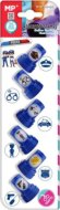 Комплектът от MP се състои от 6 печата с диаметър ∅ 2.5 cm и различни картинки на тема космос - космонавт, космически кораб, летяща ракета, извънземно, НЛО чиния и спътник. Печатите имат удобна ръкохватка, подходяща за малките ръчички. Корпусът им показва цвета на мастилото, а върху капачките се вижда картинката, която изобразяват. Те са чудесен начин да развиете въображението, креативността и творческото мислене на детето си. С тях то ще може да се забавлява, поставяйки печати върху книжки за оцветяване, блокчета за рисуване или хартия. ... |
