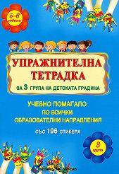Подходяща за деца от 5 до 6 години. ... Упражнителна тетрадка е предназначена за децата от 3. възрастова група на детската градина и може да се използва както в часовете в детската градина, така и за допълнителни упражнения у дома. Занимателните задачи и дидактични упражнения в нея са съобразени с възрастовите възможности на децата и с изискванията на действащата програма за предучилищно възпитание и образование. Те ще помогнат на децата да разширят познанията си по различните образователни направления, развивайки тяхната наблюдателност, концентрация и логическо мислене. Помагалото съдържа 196 стикера. Настоящото ... |