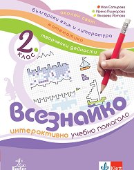 Иновативната поредица от интригуващи учебни помагала Всезнайко има за цел да подпомогне общообразователната подготовка на учениците в началните класове. Книжката съдържа 13 теми, които смислово следват учебното съдържание по околен свят, с много интерактивни задачи и предизвикателства към всеки ученик, има ясно изразен интердисциплинарен характер с практическа приложимост на знанията по български език и литература, математика, околен свят, творчески дейности и включва интересни, специално написани римувани текстове по всяка от темите и атрактивно илюстрирани страници. Учебното помагало е насочено към всички форми на ... |