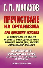 Обобщен опит, съвременен подход - универсална методика за самолечение без лекарства и профилактика. ... Пречистването - феноменален метод за самолечение и профилактика. Бестселърът на известния Г. П. Малахов представлява усъвършенствана научно обоснована система за пълно прочистване на организма - универсална методика за самолечение без лекарства и профилактиката на всички болести. Посочени са разнообразни методи и процедури за пречистване на дебелото черво, черния дроб, жлъчния мехур, бъбреците и освобождаване от камъни. В книгата ще намерите информация за: гладуване; уринотерапия; соколечение; билколечение; ... |