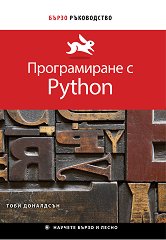 Научете Python - бързо и лесно! ... В книгата "Бързо ръководство: Програмиране с Python" ще откриете: кратко описаните стъпки и обяснения ви позволяват да започнете работа на мига; важният наръчник за справки ще ви кара да се връщате отново и отново; в случай, че желаете да се захванете за работа и да научите основните неща за Python, тази книга е идеална за вас - от аритметика, низове и променливи до функции, структуриране на данни, вход и изход и много, много други неща; посетете сайта към книгата за примерни скриптове и повече. Тоби Доналдсън е старши лектор по компютърни науки в Университета " ... |