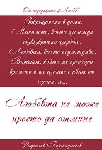 "Завръщането в дома. Миналото, което изглежда безвъзвратно изгубено. Любовта, която подмладява. Вятърът, който ще преобърне времето и ще изпише с цвят от череши, че..." Радослав Гизгинджиев Авторът на хитовия роман Рай и провокативните Дневници ни представя поредица от любовни истории, които ще ви развълнуват с безпощадни откровения, романтични картини, остър език и отново ще бъдат назовани част най-големите ни страхове. За да се уверим, че най-силната магия в човешкия живот е Любовта. ... |