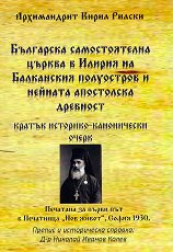 Трето издание. Препис и историческа справка: Д-р Николай Иванов Колев. ... "Уважаеми читателю, В ръцете си държиш препис на забележителния кратък историко-канонически очерк на Архимандрит Кирил Рилски, издаден за първи път в София през 1930 г. от печатница Нов Живот: Българска самостоятелна църква в Илирия на Балканския полуостров и нейната апостолска древност. През 2012 г. моят приятел Петко Атанасов преиздаде фототипно тази книга. Това издание и изключително ценно за специалисти и за онези любители на българската история, които са свикнали да четат стария ни правопис. Моята лична издателска практика показва, че ... |