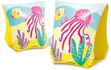 Ако детето ви мечтае да плува като рибка - тези обезопасителни, надуваеми ръкавели с десен на коралови рибки, са добро помощно решение. Удобни, практични и красиви. За да надуете най-бързо и лесно този продукт, ви е необходима помпа. При спукване на продукта, може да го залепите с лепило или лепенка. Продуктът може да има незначителни разлики в апликациите от показаните на картинката. ...