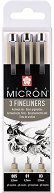 Тънкописците от "Sakura" използват перманентно мастило, което не съдържа киселини и е водо- и светлоустойчиво. Тънкописците "Pigma Micron" са предпочитани от писатели и илюстратори. Тялото е изработено от пластмаса, а писецът е подсилен със стомана и е удължен за лесна употреба с чертожни инструменти. Комплектът се състои от 3 броя тънкописци, които оставят линии с дебелина 0.20, 0.25 и 0.35 mm. ...