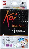 Акварелните бои от серията Koi на Sakura се предлагат в удобен и лесно преносим комплект, подходящ за рисуване на открито. Той включва 24 ярки цвята, разположени в удобна пластмасова кутия, която ги съхранява и предпазва от външни влияния по време на работа. Вътрешната страна на капачето ѝ може да се използва като палитра за смесване на цветове. Към комплекта за рисуване с акварели са включени тубичка с перлен медиум от 5 ml, за добавяне на деликатен блясък към картините, четка с воден резервоар и мека гъбка за попиване при смяна на цветовете. Акварелните бои са наситени и не изискват първоначално навлажняване ...