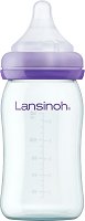 Бебешкото стъклено шише Lansinoh е с вместимост 160 ml и има капачка против разливане, удобна ергономична форма и широко гърло, което го прави лесно за пълнене и почистване. Предлага се в комплект със силиконов физиологичен биберон за бебета от 1+ месеца S с бавен поток на течността. Биберонът е произведен от мек и еластичен силикон, който спомага за естественото движение на езика на бебето и е с размери и форма, които позволяват да прилепва идеално към небцето и така наречената всмукателна кухина. В основата си биберона е с леко грапава повърхност, което позволява устните на бебето да се движат свободно по повърхността ... |