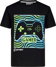 Тениската е отличен избор за малките почитатели на електронните игри. Изработена е от мека и приятна на допир материя със състав 100% памук, която осигурява комфорт през целия ден. Дизайнът включва едноцветен фон с ефектна щампа, която добавя геймърски акцент. С обло деколте и къси ръкави, моделът е подходящ за пролетно-летния сезон и е удобен както за игра и спорт, така и за ежедневни разходки. ...