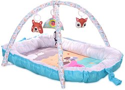 Бебешката подложка на Lorelli осигурява безопасно и комфортно пространство за сън и игри на бебето още от първите му дни. Тя ограничава пространството около новороденото и по този начин му помага лесно да се приспособи към новата среда. Подложката е изключително практичен аксесоар тъй като има няколко приложения и може да се използва както у дома, така и когато сте на почивка. Тя може да бъде използвана като бебешко "гнездо" за безопасен и комфортен сън или като активна гимнастика. Арките с 3 висящи играчки и безопасно огледалце може лесно да се поставят и премахват. Благодарение на подложката, бебето ще бъде ... |