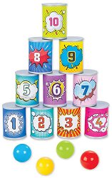 Тествайте своята координация и точност с играта от Pilsan! Тя е подходяща за деца над 3-годишна възраст и се състои от 10 кенчета и 4 цветни топки. Елементите са изработени от пластмаса. На всяко кенче има изписано число от 1 до 10, като улучвайки всяко едно от тях, ще печелите съответният брой точки. В играта могат да се включат от 1 до 4 участника. Харесайте си топче с цвят - зелен, син, червен или жълт. Подредете кула от кенчетата, след което се прицелете и стреляйте. Успяхте ли да съборите някоя от мишените? Ако да, вземете кенчето при себе си и е ред на следващия участник. Който събере най-голям сбор точки от ...