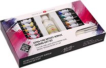 Комплектът от серията Master class на Невская Палитра включва 12 тубички с акрилни бои по 18 ml, акрилен лак с гланцов ефект и 2 четки за рисуване - №3 и №4. Боите са направени специално за професионални художници. Те са с високо пигментни и интензивни цветове. Боите имат богата текстура и вискозитет. ... |