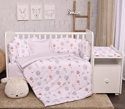 Спалният комплект с две лица "Trend" от серията "Балони" на "Lorelli", със стилно съчетаните си цветове и ефектно декориран десен, ще превърне креватчето на вашето бебе в уютно и красиво място за сън и забавни игри. Комплектът се състои от олекотена завивка с топлинна устойчивост 2.9 tog*, възглавница, долен чаршаф, постелка за повиване и обиколник. Той е изработен от 100% висококачествен памучен ранфорс, а пълнежът на олекотената завивка, постелката за повиване, възглавницата и обиколникът е с пълнеж от мека 100% полиестерна вата, която е абсолютна безвредна за децата. Обиколникът е ... |