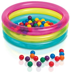 Направете къпането и играта на малчуганите си още по-забавни, като им подарите този страхотен бебешки басейн с надуваем под, който е в комплект с 50 разноцветни топки с ∅ 6.4 cm. Басейнът може да се използва както на двора или на плажа, напълнен с вода, така и вкъщи, напълнен само с топките. Не поставяйте басейна върху асфалт или друга твърда повърхност, за да не се повреди. За целта можете да го поставите върху подложка за басейн. За да надуете най-бързо и лесно този продукт, ви е необходима помпа. При спукване на продукта, може да го залепите с лепило или лепенка. Продуктът не съдържа фталати Фталатите са ... |