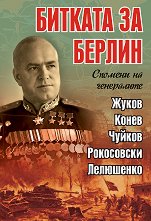 Спомени на генералите Жуков, Конев, Чуйков, Рокосовски и Лелюшенко. ... На 16 април 1945 г. след ожесточена артилерийска подготовка войските на 1-ви беларуски и 1-ви украински фронт минават в настъпление към столицата на фашистка Германия Берлин. В периода от 16 април до 2 май съветските войски пробиват немската отбрана и превземат града. Берлинското сражение става символ на колосалните загуби и тоталното разрушение, характерни за тази война. По своята ярост уличните боеве в немската столица не отстъпват на водените по-рано в Сталинград. За последните дни на хитлеристката столица подробно разказват онези, които овладяват ... |