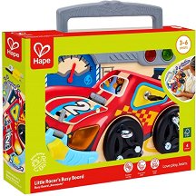 Развивайте фината моторика на вашето дете с преносимата образователна дъска за малки автомобилни ентусиасти от HaPe. Тематичната "ремонтна" станция комбинира множество интерактивни елементи в динамична състезателна сцена, която насърчава творческа и ролева игра. Дъската включва седем вида детски винтове за гуми и различни инструменти, които помагат на децата да упражняват захват, координация и сръчност. Капакът на двигателя се отваря, разкривайки два кабела, които детето трябва да съчетае с правилните цветно кодирани отвори. При завъртане на ключа светлините светват, а играчката възпроизвежда реалистичен звук ... |