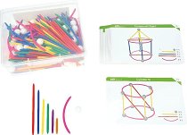 Комплектът от Learning Resources е подходящ за деца над 6-годишна възраст. Той се състои от 80 цветни пръчици в 4 размера и 4 цвята, 40 свързващи топчета, 24 извити пръчици и 20 двустранни карти с илюстрации на различни геометрични фигури за сглобяване. С него те ще могат да сглобяват различни геометрични фигури. Фигурите могат да бъдат триизмерни или двуизмерни. Заниманието с комплекта ще подобри фините двигателни умения на децата, както и ще развие творческите им умения за разрешаване на казуси. ... |