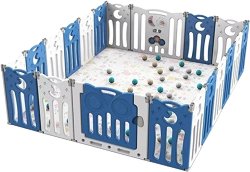 Детската кошара Ema Junior на Sonne осигурява сигурност и комфорт на вашето дете по време на игра. Тя се състои от 20 панела и е достатъчно голяма, за да може вашето дете да играе свободно в нея. А чрез използването на различен брой панели може да променяте формата ѝ или да създадете различно по размер пространство за игра. Вратата има заключващ механизъм, за да не се отваря свободно. В сглобен вид преградата е с размери 179 / 63 / 216 cm и е подходяща за деца на възраст над 12 месеца. Важно: Снимките са с илюстративна цел. Допълнителните елементи, като топки, картини, играчки, мебели, лампи, възглавници, ...