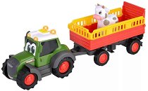Играчката е част от серията ABC, където ще намерите още интересни комплекти. ... Малчуганите ще се забавляват с тракторчето от Dickie. То може да издава звук и свети. Селскостопанската машина разполага с ремарке, в което се вози рогата крава. Вратата на ремаркето може да се отваря. Малчуганите могат да се насладят на весели мелодии, докато пътешестват с новото си приятелче. Дайте им шанс да разиграват ролеви игри и да развият своето въображение. Размерите на трактора с ремарке са 30.5 / 10.5 / 9.5 cm. Играчката работи с 2 батерии AAA, които са включени с демонстрационна цел и е необходимо да се заменят с нови. ... |